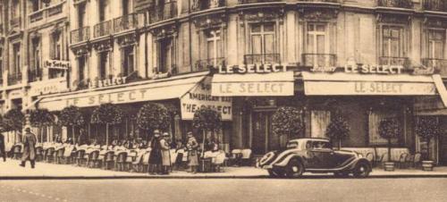 Afbeeldingen onder: Le Sélect op de Boulevard Montparnasse, een portret van McArlon en een van Nancy Cunhard.