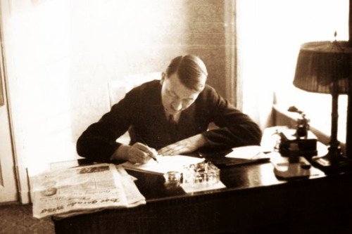 Afbeelding boven: het monument voor de Rukhnama in Asjgabat; de constructie had een mechaniek waarmee af en toe een bladzijde kon worden omgeslagen. Afbeeldingen onder: dictators aan de schrijftafel – Mussolini, Hitler, Stalin, Mao.