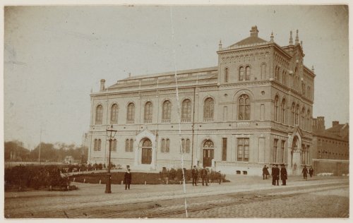 Afbeelding: Het gebouw van de Vrije Gemeente, foto naar glasplaat-negatief, verspreid als ansichtkaart 1880-1883. Beeldbank Stadsarchief Amsterdam.