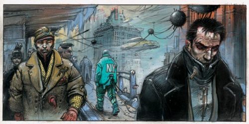 De afbeeldingen zijn uit de Nikopol-trilogie van de Frans-Servische tekenaar Enki Bilal, mijn favoriete dystopie in druk.
