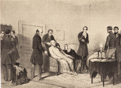 Afbeelding boven: Willem II, op zijn sterfbed (stoel eigenlijk) te Tilburg in 1849. Afbeeldingen onder: het pamflet Koning Gorilla uit 1887, dat het beeld van Willem III in de geschiedenis tot op de huidige dag sterk bepaalt; afbeelding van Willem I op een penning ter herdenking van de Tiendaagse Veldtocht.