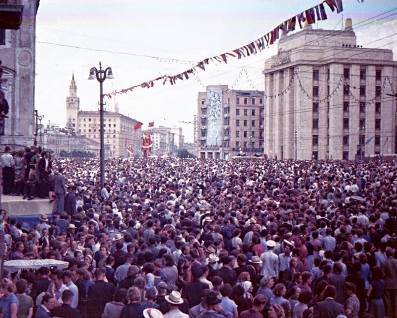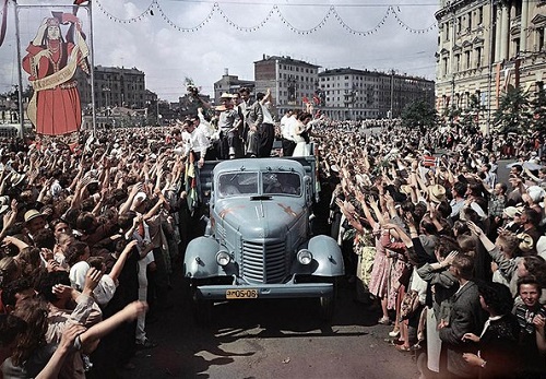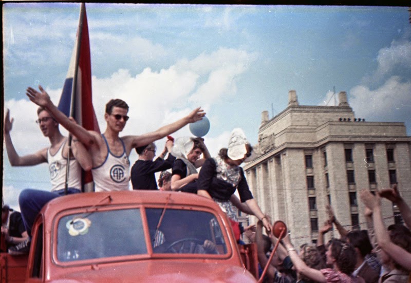 Tienduizenden Moskovieten stonden te juichen toen op 28 juli 1957 de deelnemers aan het Internationale Jeugdfestival op vrachtwagens en in autobussen hun intrede deden in de hoofdstad van de Sovjet-Unie. En niet omdat ze, zoals meestal in Moskou, naar het centrum waren gedirigeerd en door partij- en vakbondskaders ordelijk langs de kant waren opgesteld, met de juiste slogans op spandoeken. Nee, het volksfeest van 1957 was spontaan – gewild, door de politieke leiders van het land, maar ook spontaan. En de intocht was nog maar het begin van weken, waaraan Sovjet-burgers die ze hadden meegemaakt, nog decennialang euforische herinneringen zouden bewaren. Een moment waarop het leek dat de Sovjet-Unie eindelijk deel van de grote wereld zou worden en waarop haar burgers ook met die grote wereld in contact konden komen.