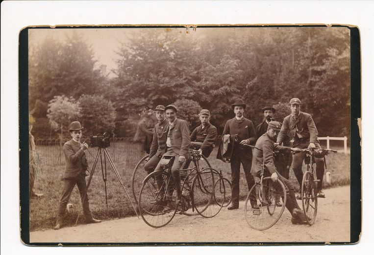 Maar de grote klap voor amateurfotografie komt in 1888, wanneer de eerste Kodak-camera op de markt komt, met daarin een flexibele filmrol waarop je wel honderd opnamen kwijt kunt. Een druk op de knop volstaat, het ontwikkelen geschiedt desgewenst door de fotozaak. Dan wordt ook de ‘snapshot’ geboren – de losjes geschoten opname van het dagelijks leven. Op de tentoonstelling is een vroeg Nederlands voorbeeld van een album met zulke Kodak–opnamen te zien, die dan nog rond zijn, met een diameter van negen centimeter. ‘Scraps’ heet het, en is rond 1892 gevuld door de Amsterdamse patriciërsfamilie Piek. De affiche van de tentoonstelling laat een van die opnamen zien, met jongens die vanaf de kade een boot in springen. Met de jaren wordt fotograferen steeds minder een dure hobby. De slogan ‘Iedereen fotografeert’ komt van een reclameaffiche van een Amsterdamse fotozaak. Zo rond 1900 lijkt dat in burgerlijke milieus ook aardig de praktijk te worden. Men fotografeert dat het een lieve lust is, binnen en buiten het huis. De opkomst van de camera loopt min of meer parallel met de opkomst van de fiets, als instrument van vrije-tijdsbesteding. Er wordt dan ook veel gefietst op de foto’s.