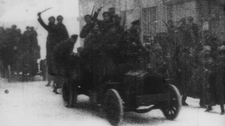 Er zijn beelden van het in later jaren toch als smadelijk ervaren Brest-Litovsk-pact waarbij de jonge Sovjet-Unie een onvoordelige vrede sloot met Duitsland, en de bondgenoten in de Eerste Wereldoorlog in de steek liet. De onderhandelingen vonden plaats in een onogenlijk houten gebouw in Brest, net achter het front.