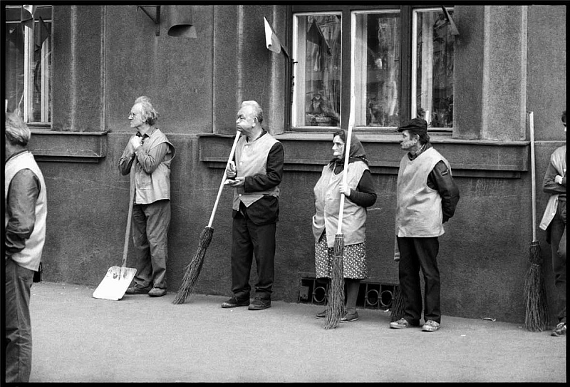 Die grauwheid, letterlijk door het gebrek aan onderhoud in de steden en figuurlijk door de uitzichtloosheid in het bestaan van de bevolking, was harde realiteit. Ik herinner me nog hoe ik, terug van een paar weken in zo’n vervallen, grauwe Oost-Europese hoofdstad, op Schiphol op mijn koffer stond te wachten terwijl op de belendende band Nederlanders die net terug waren uit Benidorm hetzelfde deden – sterk gebruind, gehuld in kleurige niemendalletjes van de Zeeman en luid pratend. Het antwoord op de vraag aan welke kant van het zogeheten IJzeren gordijn de arbeidersklasse het het best getroffen had, was niet moeilijk te geven. Niet aan de kant waar zij aan de macht heette te zijn. Daar mochten ze hun land niet eens uit.