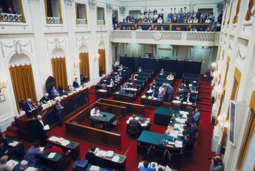 Afbeeldingen: De vergaderzaal van de Tweede Kamer in de Negentiende- en de Twintigste Eeuw.