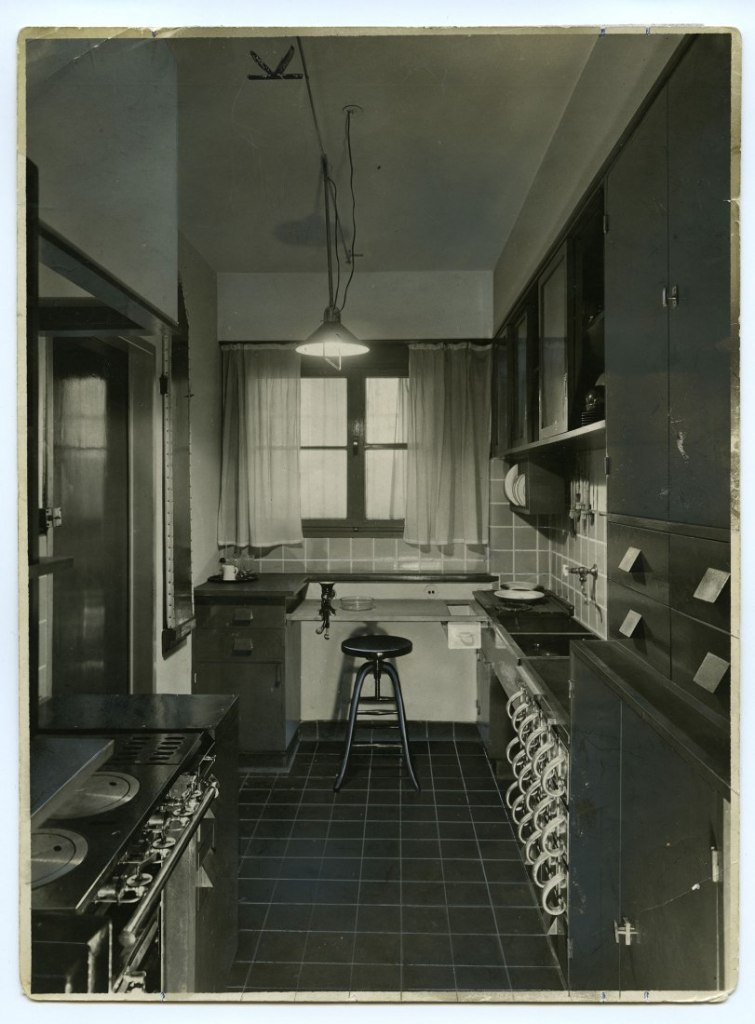 Niet alleen werden in de jaren Twintig taboes doorbroken, er werden ook nieuwe normen gesteld, van efficiency en doelmatigheid bijvoorbeeld. Neem de beroemde ‘Frankfurter Küche’ van Margarete Schütte-Lihotsky (1897-2000) uit 1926, de moeder aller inbouwkeukens. (Tekst gaat verder onder afbeelding).
