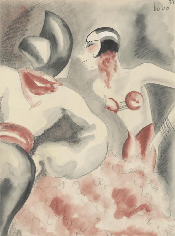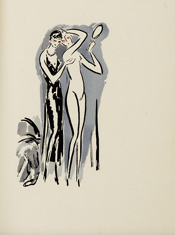 Hoe zou het komen dat veel kunst, design en mode uit de jaren 1920 ons, een volle eeuw later, nog steeds modern en aantrekkelijk voorkomt? Een deel van de verklaring is vermoedelijk dat in de jaren 1920 de basis werd gelegd voor veel in onze hedendaagse cultuur. Beeld werd bijvoorbeeld heel belangrijk, en technisch steeds beter reproduceerbaar, als foto in kranten en bladen, als film in de bioscoop. Radio deed zijn intrede als massa-medium. Het verschijnsel ‘consument’ brak door, met name in de cultuur. Het vrouwbeeld veranderde, van de opgetuigde nette dame van 1900 naar de zelfbewuste, rokende verschijning, het haar kort geknipt in ‘bubi’-stijl en gehuld in taille-loze jurk. Bij mannen maakte de statige geklede jas met vest plaats voor het snel-gesneden pak en pommade in het haar. Hier enkele illustraties van Kees van Dongen uit 1926 in een editie uit 1926 van ‘La garçonne’, een schandaal-roman van Victor Marguerite over een moderne, vrije vrouw – zo vrij dat zij met mannen én vrouwen erotische contacten onderhoudt. (Tekst gaat door onder de afbeeldingen).
