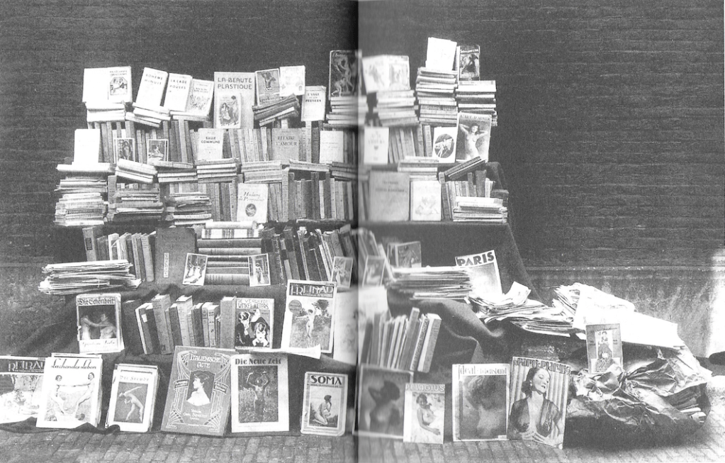 Een van de interessantste hoofdstukken in Sliggers’ boek gaat over de activiteiten van Duitse uitgevers van erotica in Nederland. Na de machtsovername van de Nazi’s in 1933, en de boekverbrandingen, namen ook zij soms de wijk naar Nederland, net als ‘gewone’ uitgevers, en poogden hun activiteiten met levering per post naar Duitsland en Oostenrijk voort te zetten. Een van hen, een zekere Herbert Lewandowski, werd tot een maand hechtenis veroordeeld, nadat hij bij een politieverhoor in 1935 had bekend te handelen in de roman ‘Josephine Mutzenbacher’ die sinds 1932 op de lijst stond. Ook op de werken van de beroemde Duitse seksuele hervormer Magnus Hirschfeld had het Rijksbureau het niet begrepen. Na 1933 leek het een tijdje alsof alle Duitse uitgevers hun restvoorraden naar Nederland hadden laten overbrengen.