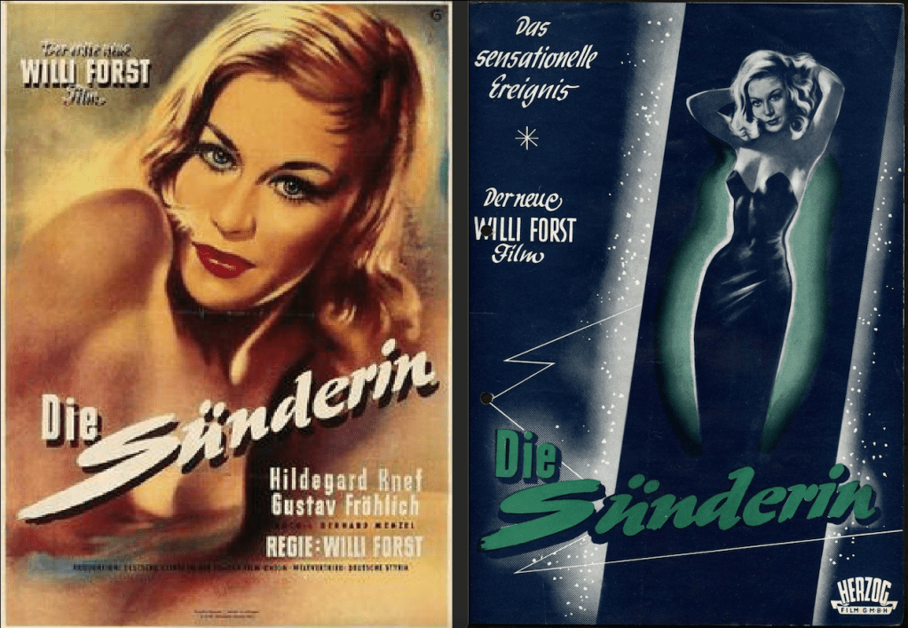 Een andere, bijna revolutionair te noemen ontwikkeling voltrok zich na 1945 op het gebied van de zeden. De mannen die de militaire dienst overleefd hadden, keerden vaak zwaar getraumatiseerd en verknipt terug in hun gezin. De oorlogsjaren hadden vrouwen noodgedwongen zelfstandiger gemaakt, ook op het gebied van seks. Het resultaat – zeer tot afgrijzen van pastoors en dominees – was een afkalving van het mannelijk gezag in het maatschappelijk leven en een algehele liberalisering van de zeden en huwelijksmoraal. Tekenend voor deze ontwikkeling, en de heftige reacties die de verandering der zeden opriep, was de opwinding rond de film ‘Die Sünderin’ in 1951, van Willi Forst, met Hildegard Knef in de hoofdrol. Dit verhaal over een prostituée die verliefd raakt op een schilder, waarin ook een naaktscène voorkomt en euthanasie als aanvaardbaar wordt voorgesteld, wekte grote beroering, vooral in katholieke kring – straatgevechten met de politie en knokpartijen tot in de bioscopen toe waren het gevolg. (Tekst gaat door onder afbeeldingen).