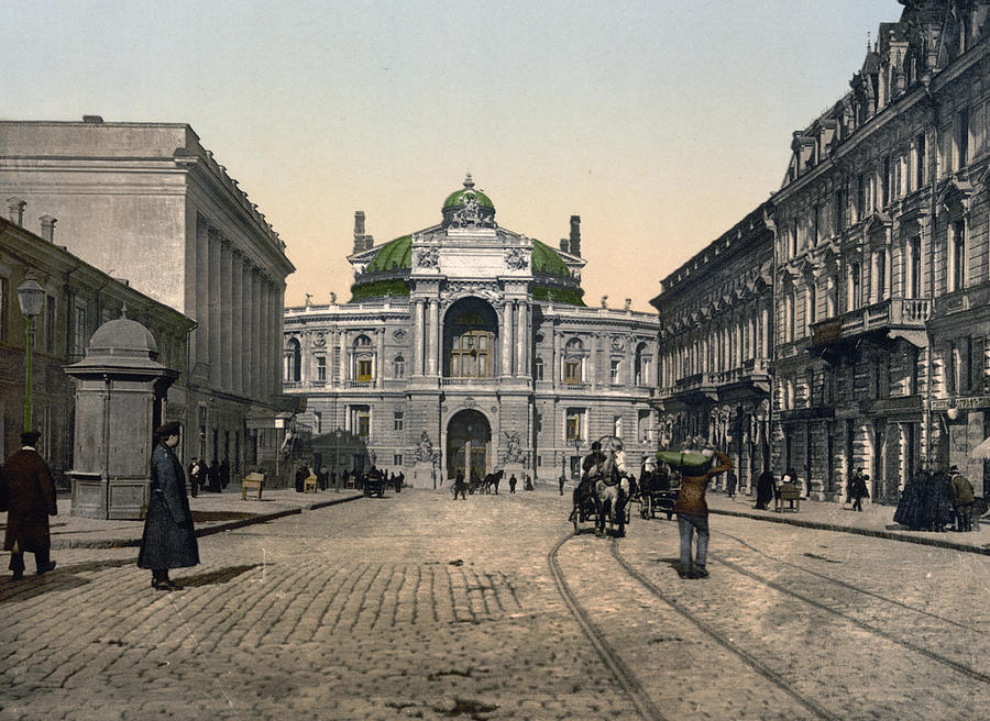 Afbeeldingen: Odessa rond 1900, met de Stadsschouwburg aan de Rue Richelieu.