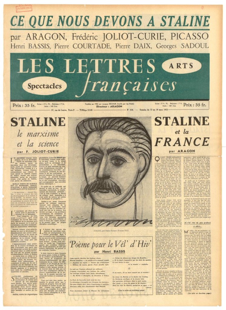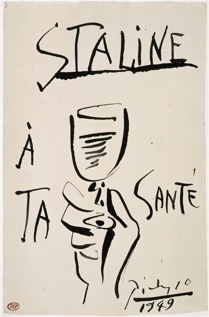 Het resultaat was vooral een niet-aflatende reeks door Picasso getekende vredesduiven, die de communistische partij kon gebruiken om in de eerste jaren van de Koude oorlog de vredespolitiek van de Sovjet-Unie aan de man te brengen in haar pers en op posters. Aan andere politieke thema’s waagde de kunstenaar zich niet. Toen de partij Picasso in 1949 vroeg om iets te tekenen ter gelegenheid van Stalins 70-ste verjaardag, werd dat een hand met een glas bubbels en de tekst ‘Op je gezondheid, Stalin’. Slechts één keer ontstond er enige deining in de PCF over een prent van Picasso: dat was na de dood van de dictator in 1953, toen Picasso voor het partijblad ‘Lettres françaises’ een portret van Picasso inleverde dat door de Stalinisten als oneerbiedig werd gezien en waarvoor Picasso’s vriend Louis Aragon, hoofdredacteur van het blad, zelfkritiek moest oefenen.