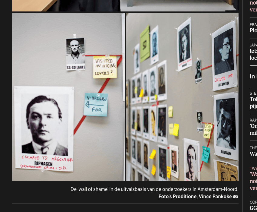 Het gaat natuurlijk niet aan om kritiek te leveren op een boek dat je zelf niet hebt gelezen, maar ik kan wel vertellen waarom ik, nadat de NRC een eerste stuk had gepubliceerd over ‘Het verraad van Anne Frank’, meteen wist waarom dit geen boek voor mij was. Het probleem was een bij het artikel geplaatste publiciteitsfoto, waarop je een muur zag met foto’s van mogelijke verdachten en pijlen, als in een aflevering van ‘Tatort’. Wat de deur dicht deed was een windjack met de letters ‘FBI’, dat nonchalant over een stoel was gedrapeerd, kennelijk om kracht bij te zetten aan de gedachte dat het hoog tijd was dat een professionele speurder de ‘cold case’ in kwestie zou oplossen. Het verraad van Anne Frank als shownummer, als in spannende tv-formats als ‘DNA onbekend’ of ‘Spoorloos’ – nee, dank U wel.