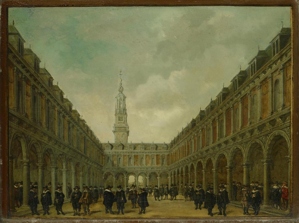 Afbeelding: De Beurs van Hendrick de Keyser. Schilderij uit 1634 van Philips Vingboons (1607-1678). (Amsterdam Museum). Dit in 1611 opgetrokken gebouw stond aan de Dam , ongeveer op de plaats van het thans gedempte deel van het Rokin. Wegens bouwvalligheid is het in 1836 gesloopt.