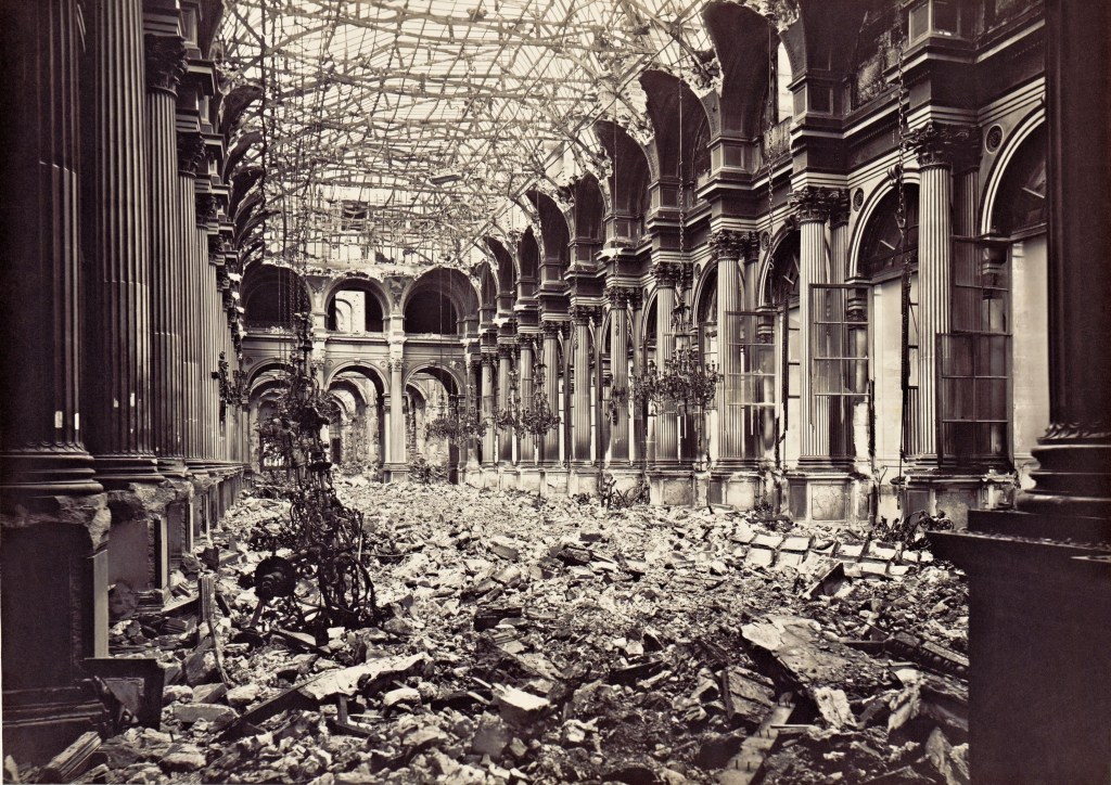 Bijna was deze serie foto’s van Marville verloren gegaan: het gemeentebestuur had ze opgeslagen in het gemeentehuis, het Hôtel de Ville, dat bij de woelingen van de Commune in 1871 afbrandde. Maar de fotograaf had de glasnegatieven gelukkig bewaard en maakte nieuwe afdrukken. Wie ze nu bekijkt, wordt door weemoed bevangen: je ziet opeens een heel ander Parijs, de stad van de Middeleeuwen, het Ancien Régime, de Franse Revolutie die nooit meer terug zal keren. Opeens kun je iets van de de haat van Victor Hugo tegen de ‘verwoesters’ meevoelen.