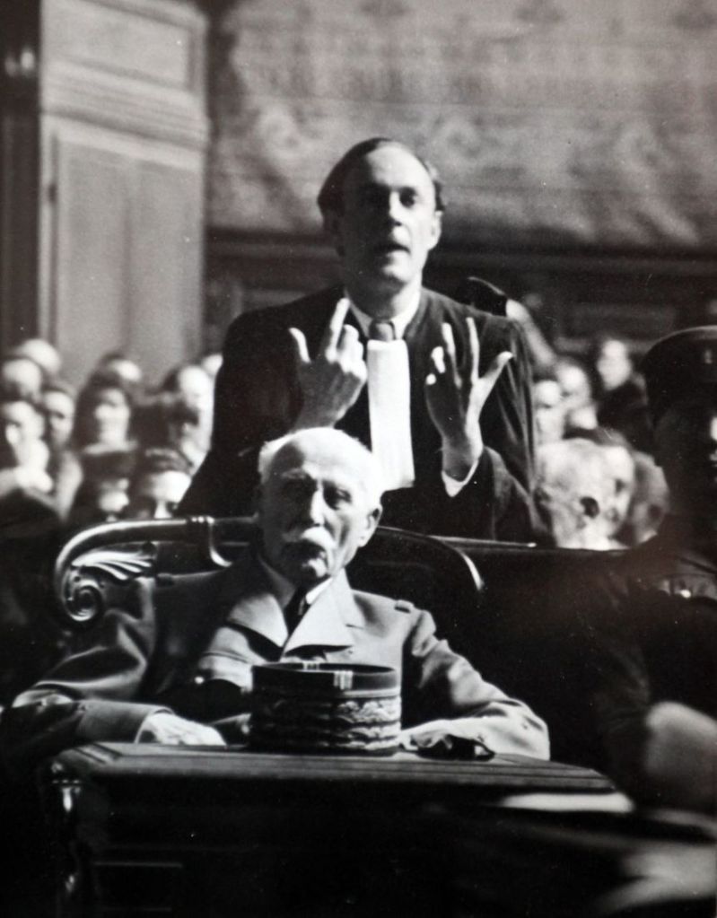 Een groot aantal voormalige gezagsdragers en politici getuigden in het proces, waaronder met name Pierre Laval, algemeen gezien als de kwade genius achter veel politiek van ‘Vichy’ en later ter dood veroordeeld en geëxecuteerd. De Jodenvervolging kwam in het proces slechts summier aan de orde. Zwaar werd de maarschalk zijn ontmoeting met Hitler, nog in 1940, aangerekend. (Tekst gaat door onder de afbeelding)