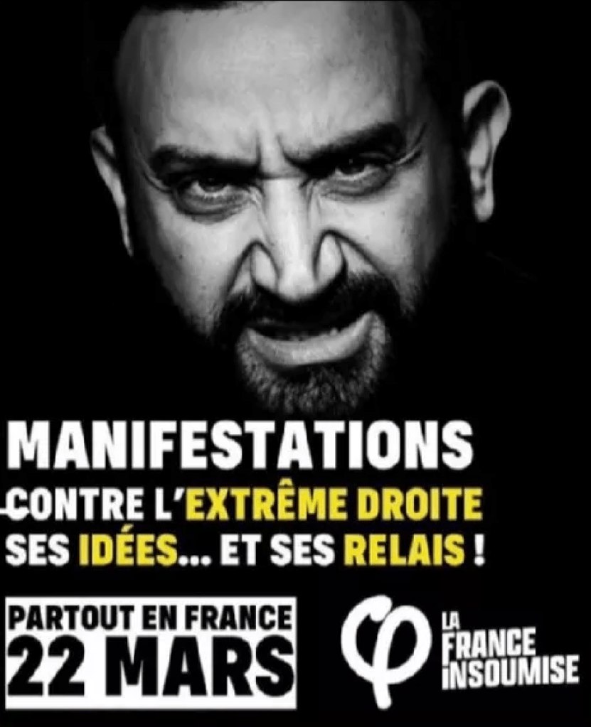 Afbeeldingen: 1. Een poster van de Franse linkse partij ‘La France Insoumise’ van eerder dit jaar, waarin tot een demonstratie tegen extreem-rechts werd opgeroepen, alsmede tegen de ideeën en de ‘steunpunten’ van rechts. De affiche werd algemeen als een uiting van antisemitisme gezien, met name vanwege de aan nazi-propaganda herinnerende manier waarop de tv-presentator Cyril Hanouna is afgebeeld. Hanouna was de presentator van een rechts georiënteerde dagelijkse talk-show op het tv-kanaal C8, dat inmiddels uit het Franse basis-tv-pakket TNT is gehaald; 2. De originele poster van de Duitse, antisemitische film ‘Jud Süss’ van de Duitse regisseur Veit Harlan uit 1940.