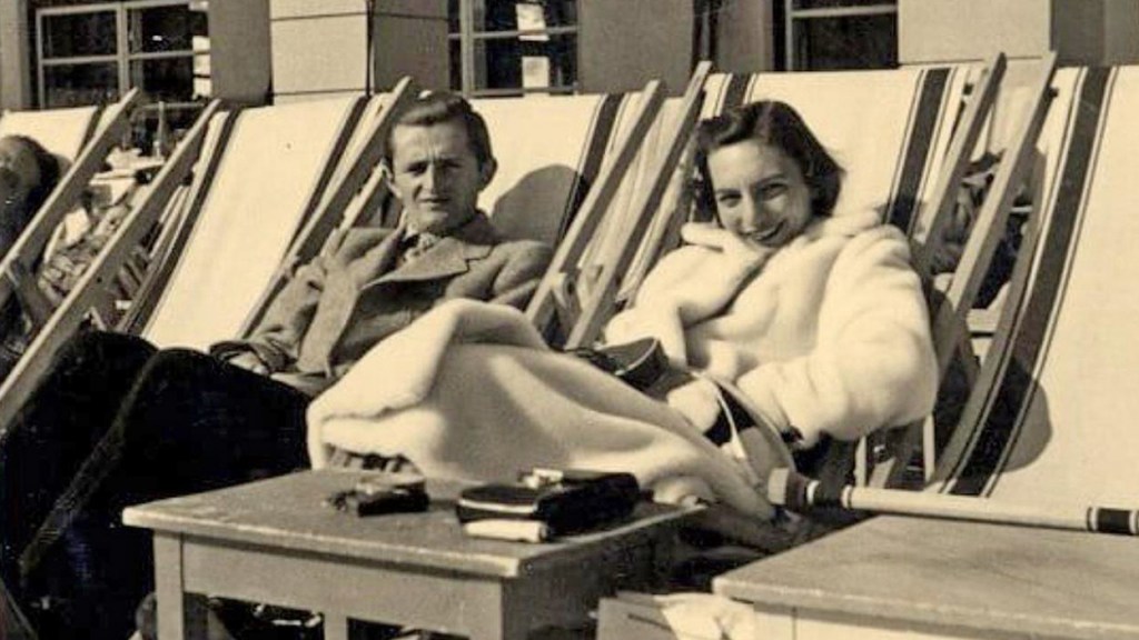 Afbeeldingen: 1. Leman en Asllan op huwelijksreis in 1941 (Penguin Random House); 2. Leman Ypi op huwelijksreis (Kosovo 2.0)